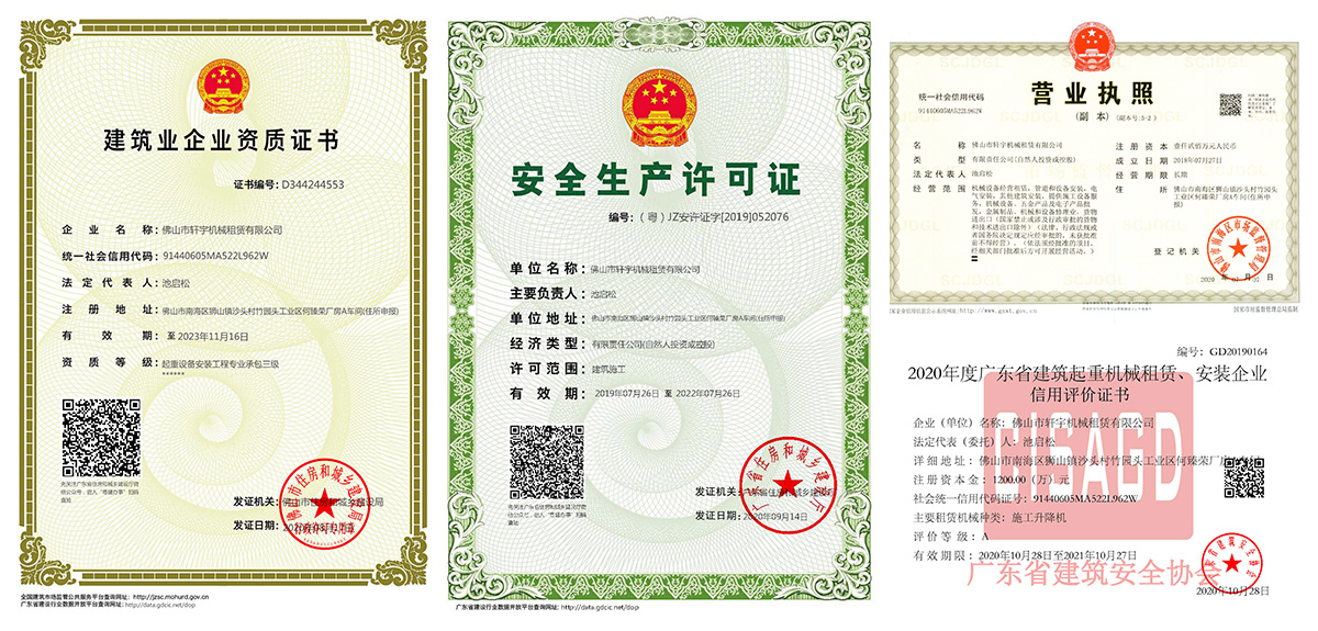 公司累计租赁台次超过300台次,目前正在工地使用升降机大约有150台,以下列表为正在使用的部分项目: